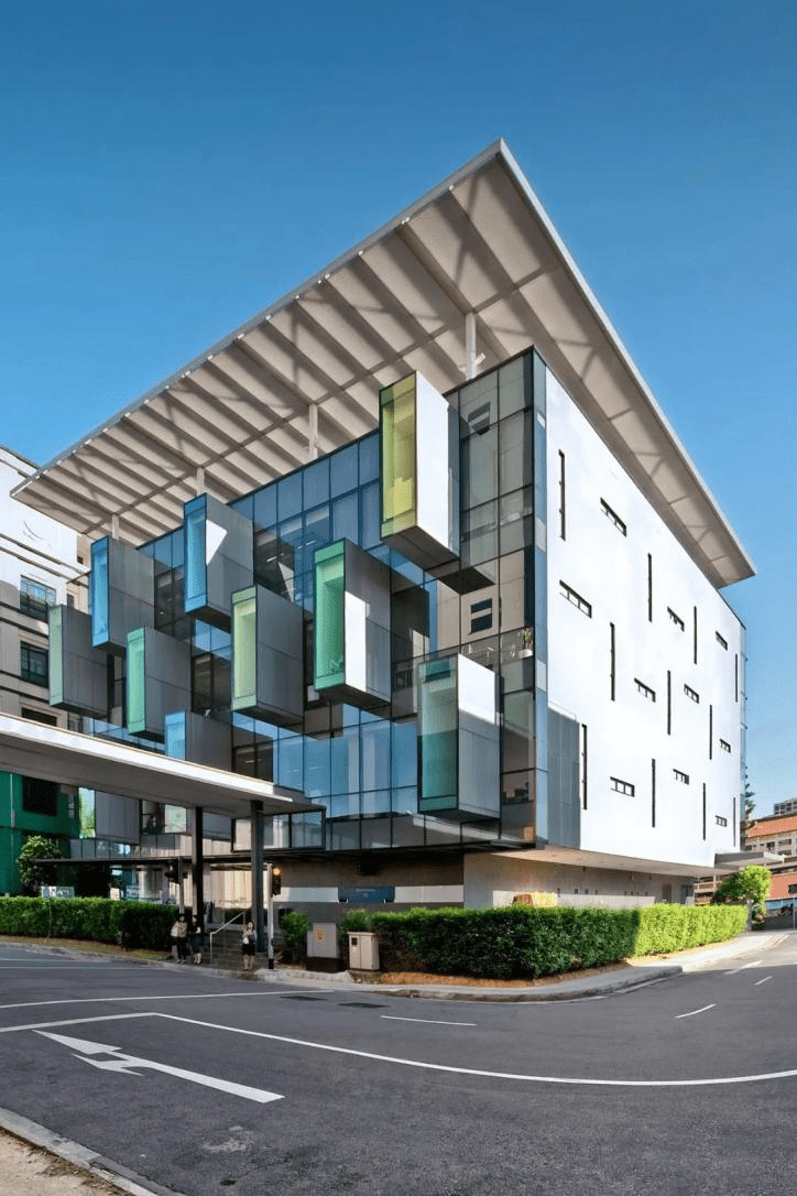 形似吊舱的“盒子”在图书馆外部平整的立面中悬挑而出