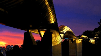 该风景区中的“亨德申波浪桥”(Henderson Waves)是一道横跨两座小山峰之间、离地36 米高的天桥,也是新加坡离地最高的行人天桥,造型别致,桥身结构犹如波浪,由起伏的曲线“肋骨”构成。