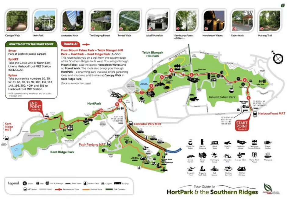 南部山脊是一条全长 10 公里的绿色开阔地带,通过风景如画的山脊和小径,将新加坡南部地区广受欢迎的公园和花园小丘陵连为一体。从NUS PGP宿舍旁的Kent Ridge Park出发,横穿花柏山公园、直落布兰雅山公园、园艺园林 (HortPark)、肯特岗公园 (Kent Ridge Park)和拉柏多自然保护区 (Labrador Nature Reserve)等,下山就来到熟悉的vivocity,Vivocity与圣淘沙周边的隐藏保护区:Labrador Nature Reserve不仅能看到红树林粗壮的气生根,还有机会邂逅候鸟与蜥蜴哦~