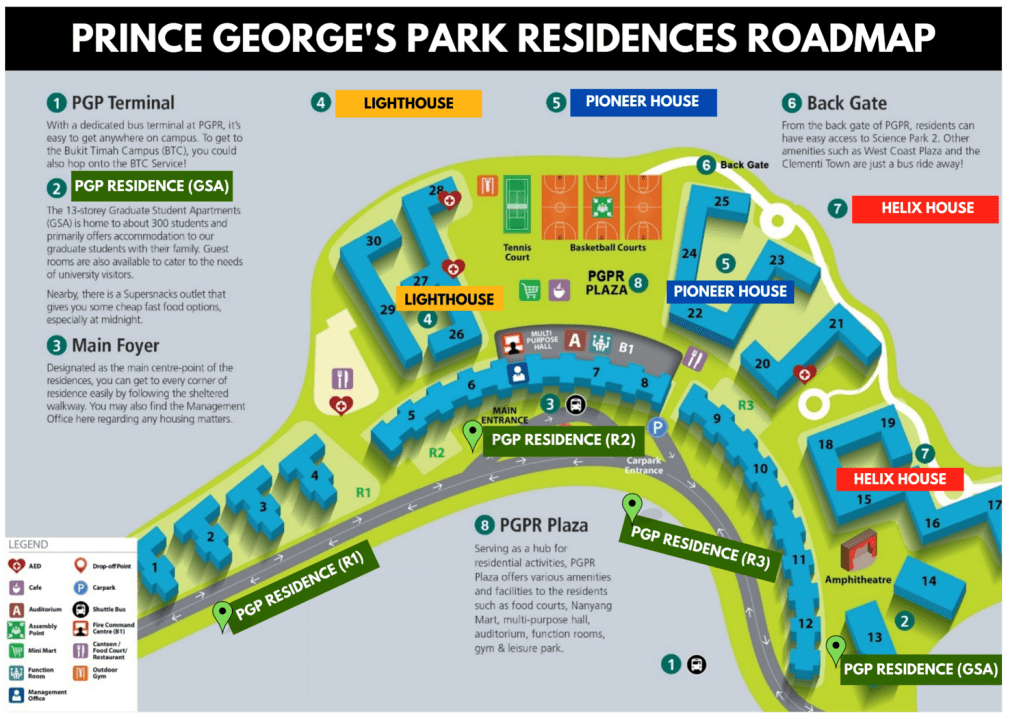 作为NUS附属的运动中心,PGP具备多功能球场、网球场、羽毛球场和篮球场。除此之外还有练舞房和烧烤坑等娱乐场所,十分贴心。