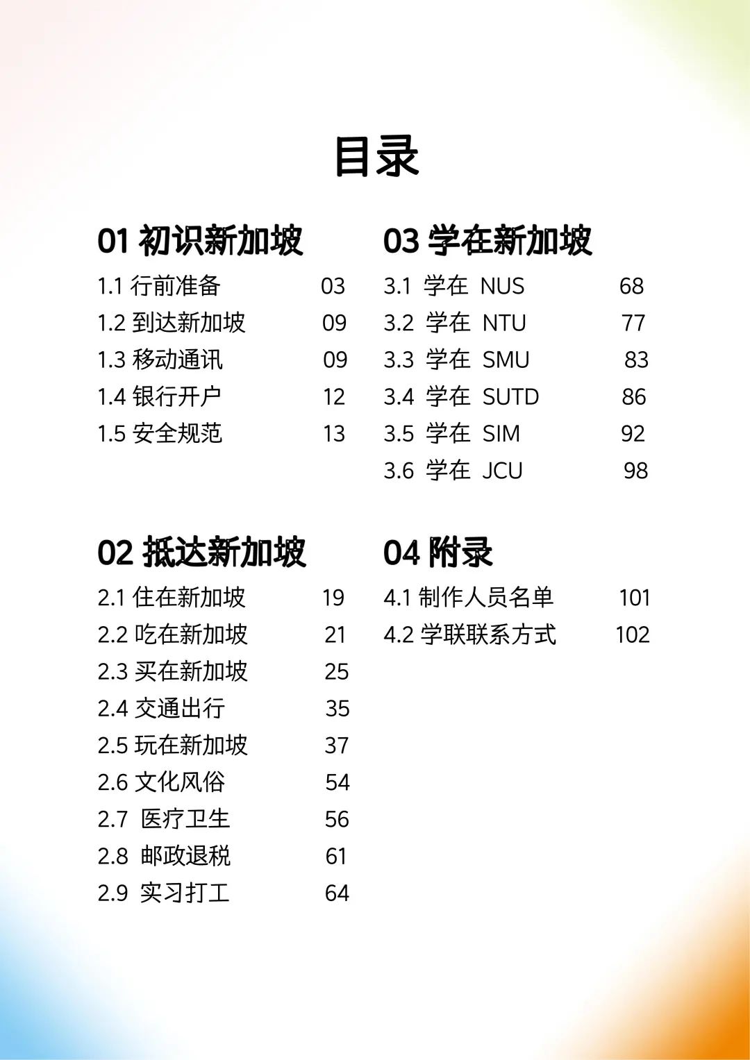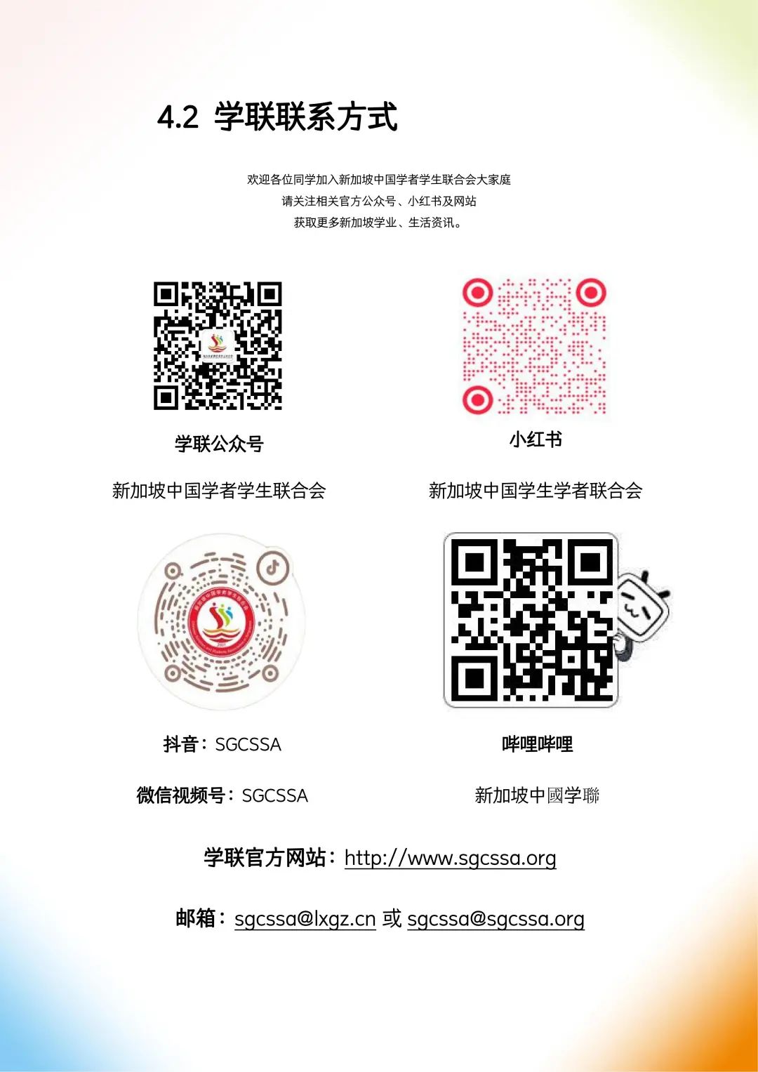 在编写这份手册的过程中,我们与新加坡多所大学的中国留学生组织紧密合作,确保所提供的信息全面且实用。这种合作精神不仅使我们在知识和经验上得以交流,更加深了我们之间的联系与支持。