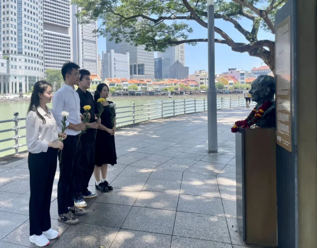 8月22日,新加坡中国学者学生联合会代表瞻仰树立在新加坡开埠起始地、新加坡人称为母亲河的新加坡河畔的邓小平纪念碑。