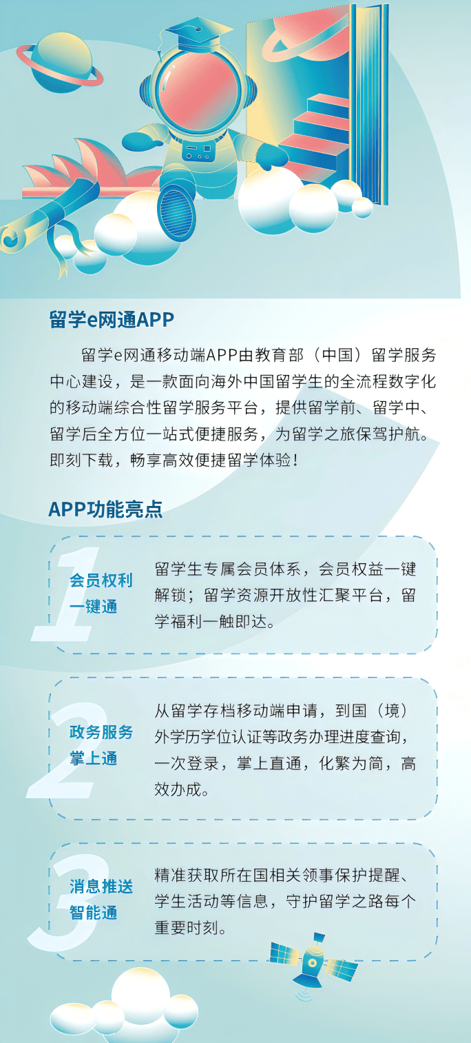官方平台,一站式留学,“留学e网通”移动端APP正式上线! 2024-9-07 18:00 | 1,464 来源:教育部留学服务中心 往期精选 关于自新加坡前往中国旅客疫情防控要求的通知 学联纳新进行时 | 一起解锁无限可能 领事保护|中国留学生安全手册 留学,从兴国到强国! 感谢您对学联长期以来的支持和关心 长按图片即可扫描二维码关注我们 本篇文章来源于微信公众号:新加坡中国学者学生联合会