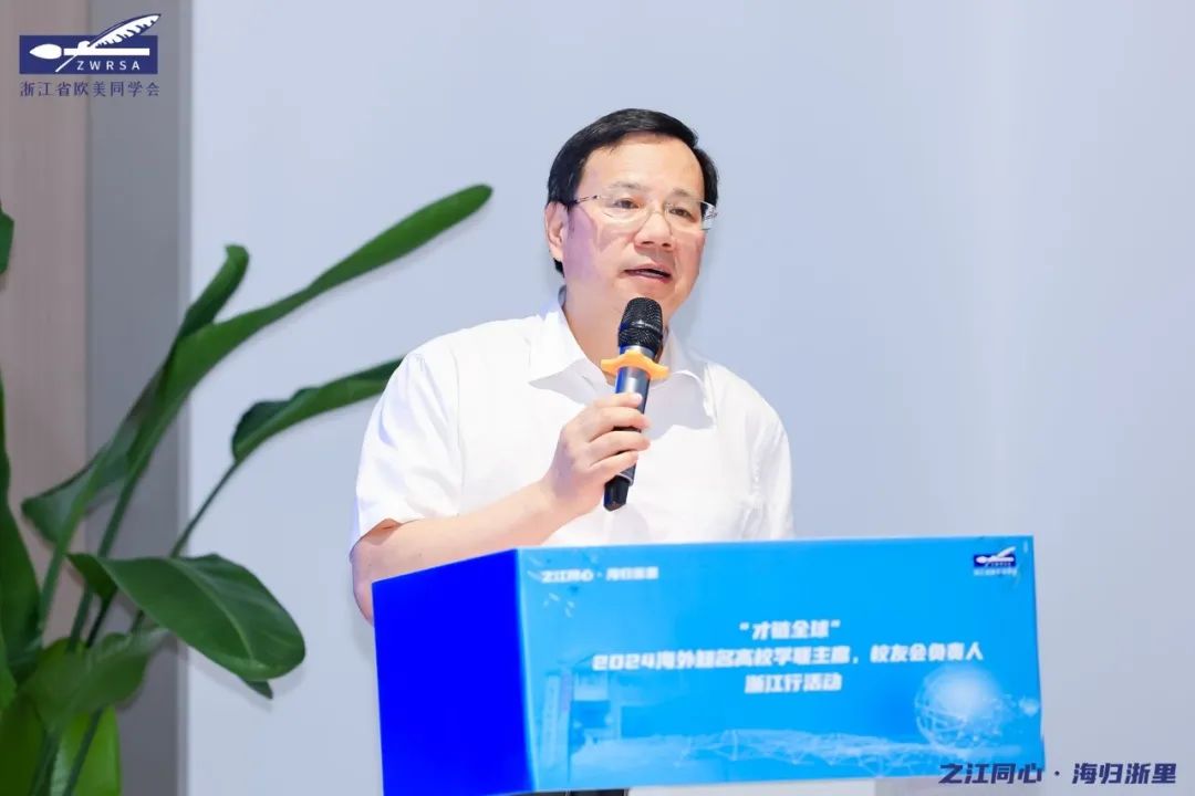 省委统战部副部长,省社会主义学院副院长、党组书记余杰对与会留学人员提出三点希望:一是发挥好学联、校友会组织的桥梁纽带作用,积极主动对外宣传推介中国、宣介浙江,通过“同学圈”“同事圈”“亲朋圈”扩大浙江的“朋友圈”;二是发挥资源优势,积极引导广大留学人员投身时代洪流,在服务浙江“重要窗口”和共同富裕示范区建设、海外人才引进等方面,做出留学人员的积极贡献;三是加强与欧美同学会等各级各类组织的交流互动,积极建言献策,共同做好海内外留学人员团结联系服务工作。